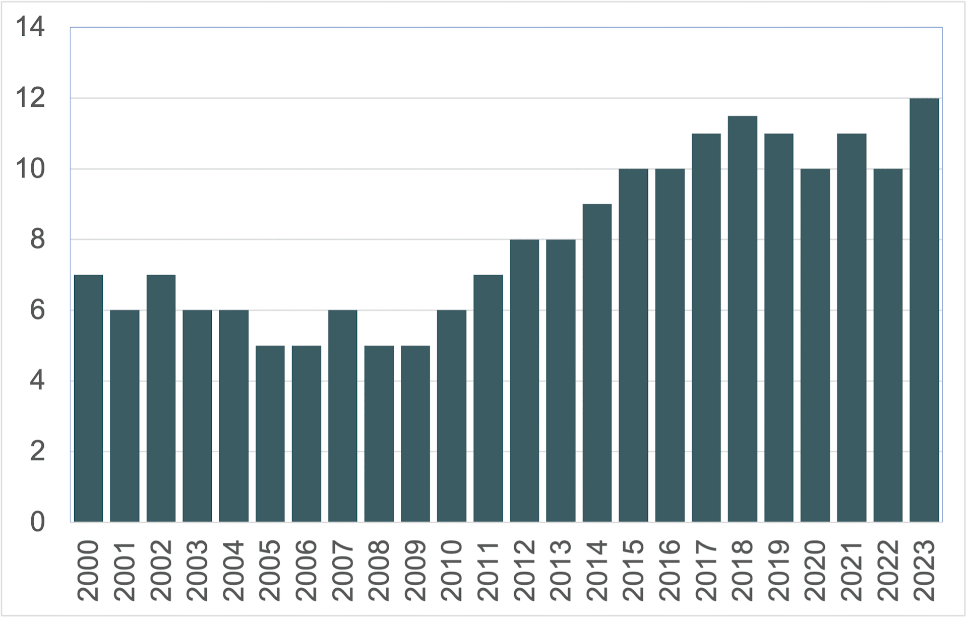 New listings have been declining year-over-year for 15 months.* In 2023, homeowners had little motivation to sell. Holding tight to their low interest rates and avoiding capital gains taxes were two top reasons for staying in place, with the added dilemma of where to go next. These concerns resulted in the highest homeownership tenure in decades, with a retention of 12 years.