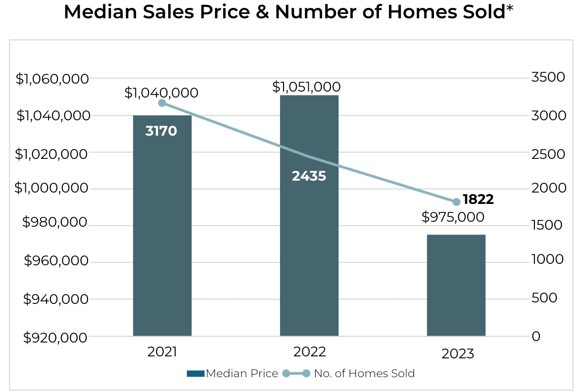 In Oakland, the number of home sales in 2023 was down 43% from 2021, and the median price was down 6%. Again, this points to the resiliency of value in the Bay Area, particularly for a city with a wide range of housing stock.