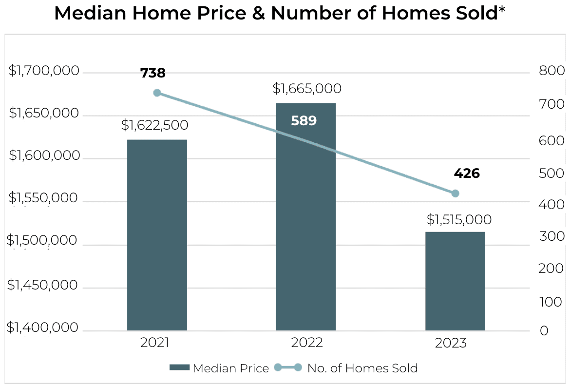 In Berkeley, the number of home sales in 2023 was down 42% from 2021, and the median home price was down 7% during that period. This speaks to the low level of available inventory but also points to the value Berkeley holds even during a slow market.