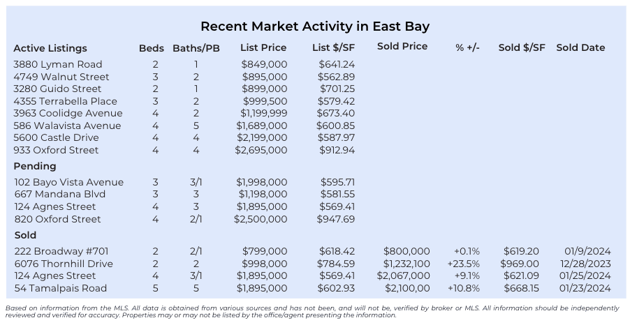 As we welcome 2024, we hope everyone enjoyed the holidays and found time to relax with family and friends. Our newsletter series began one year ago, and we greatly appreciate the positive feedback we’ve received. Each month, we aim to discuss a topic that’s timely and relevant to our readers. Research and analysis are at the core of our business; we firmly believe leveraging data creates value for our clients as they navigate the dynamic Bay Area real estate market. If there is ever something you’d like to know more about, we’d love to hear from you! It may be information that other readers would find helpful and warrant a deeper look.