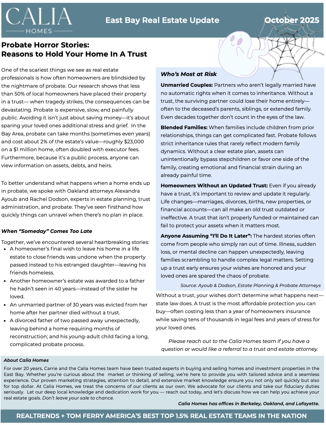 At Calia Homes, we specialize in helping East Bay clients navigate the Berkeley real estate market with confidence. Whether you're a first-time buyer searching for the perfect home near the Gourmet Ghetto or a longtime homeowner preparing to sell in the Elmwood or Northbrae neighborhoods, our experienced Berkeley Realtors offer trusted guidance, local expertise, and a people-first approach. With decades of experience and a reputation built on referrals, we’re here to help you make smart, successful real estate decisions in Piedmont and the surrounding East Bay communities.