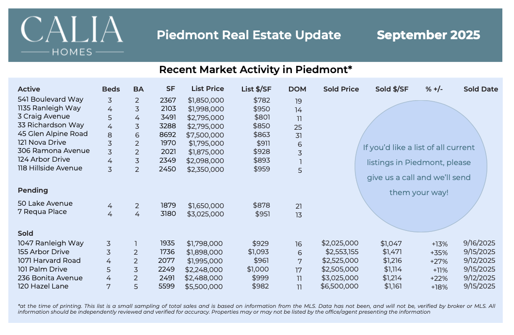 Piedmont Market Update- September 2025